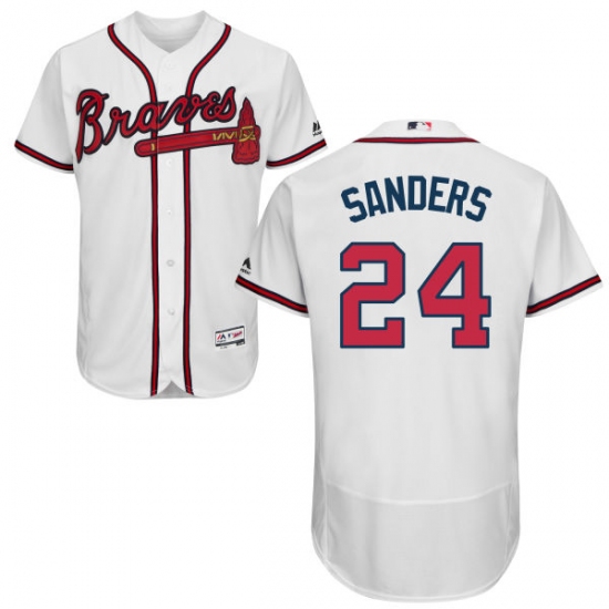 Men's Majestic Atlanta Braves #24 Deion Sanders White Home Flex Base Authentic Collection MLB Jersey