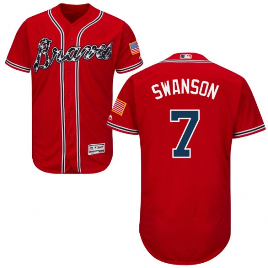 Home>MLB>Atlanta Braves>Dansby Swanson>Men's Majestic Atlanta Braves #7 Dansby Swanson Red Flexbase Authentic Collection MLB Jersey