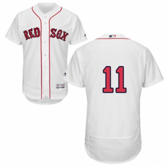 >Men's Majestic Boston Red Sox #11 Rafael Devers White Home Flex Base Authentic Collection MLB Jersey