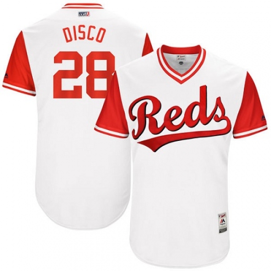 Home>MLB>Cincinnati Reds>Anthony DeSclafani>Men's Majestic Cincinnati Reds #28 Anthony DeSclafani "Disco" Authentic White 2017 Players Weekend MLB Jersey