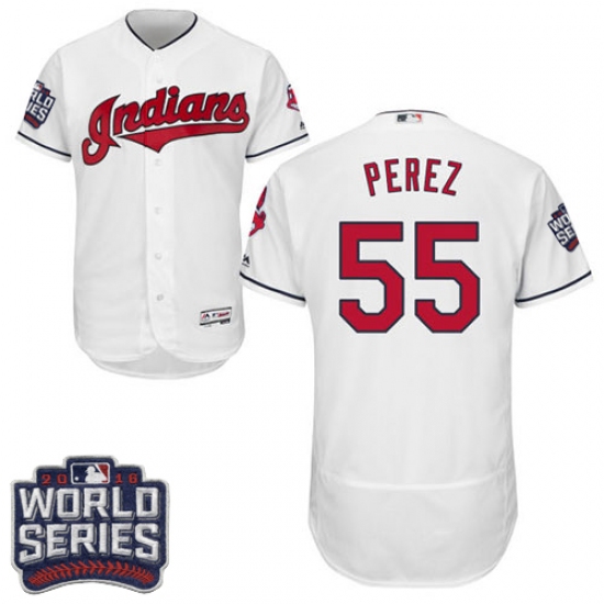 Home>MLB>Cleveland Indians>Roberto Perez>Men's Majestic Cleveland Indians #55 Roberto Perez White 2016 World Series Bound Flexbase Authentic Collection MLB Jersey