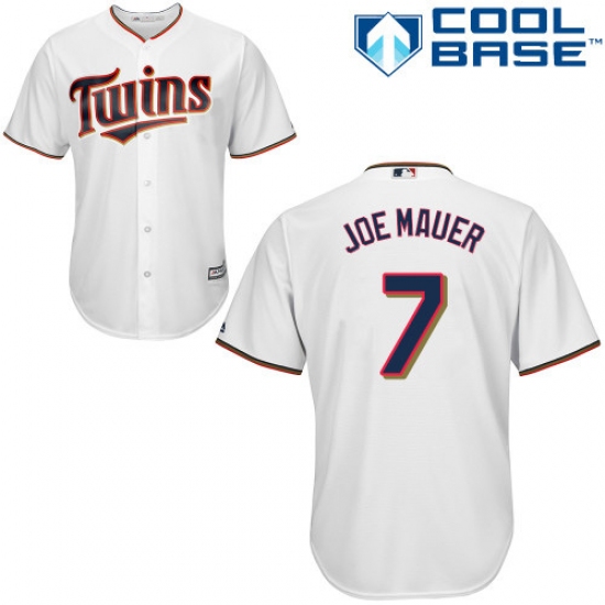 Home>MLB>Minnesota Twins>Joe Mauer>Men's Majestic Minnesota Twins #7 Joe Mauer Replica White Home Cool Base MLB Jersey
