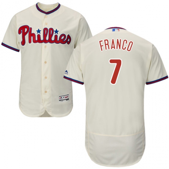 Home>MLB>Philadelphia Phillies>Maikel Franco>Men's Majestic Philadelphia Phillies #7 Maikel Franco Cream Alternate Flex Base Authentic Collection MLB Jersey