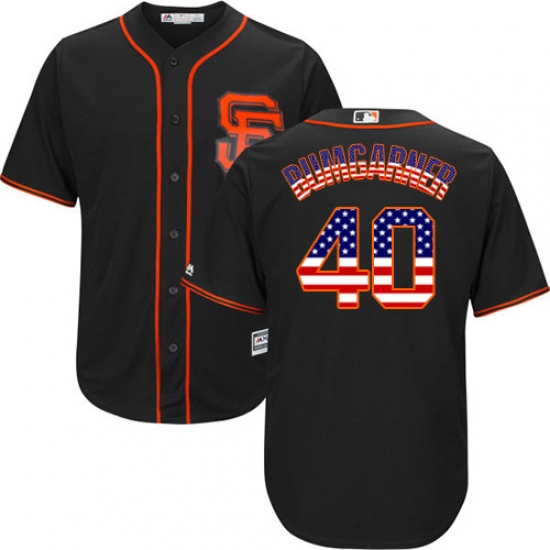 Men's Majestic San Francisco Giants #40 Madison Bumgarner Authentic Black USA Flag Fashion MLB Jersey