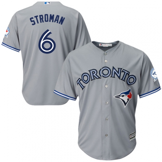 Home>MLB>Toronto Blue Jays>Marcus Stroman>Men's Majestic Toronto Blue Jays #6 Marcus Stroman Replica Grey Road 40th Anniversary Patch MLB Jersey