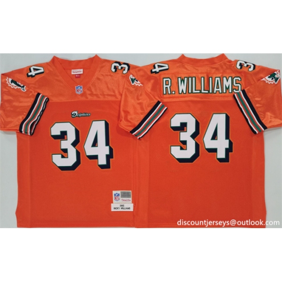 Men's Miami Dolphins #34 Ricky Williams Orange Throwback Stitched Football Jersey