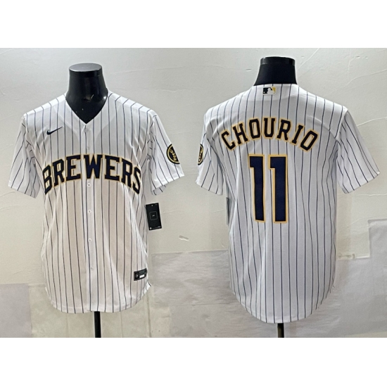 Men's Milwaukee Brewers #11 Jackson Chourio White Pinstripe 2025 With Stitched Baseball Jersey