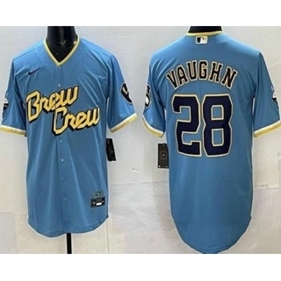Men's Milwaukee Brewers #28 Andrew Vaughn Powder Blue 2022 City Connect Cool Base Jersey