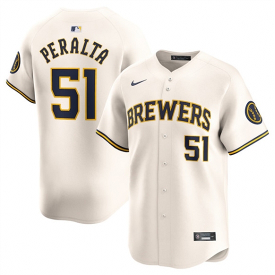 Men's Milwaukee Brewers #51 Freddy Peralta Cream Limited Stitched Baseball Jersey