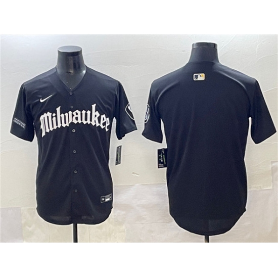 Men's Milwaukee Brewers Blank Black 'Gothic 414 Shadows Edition' Vapor Premier Limited Stitched Jersey