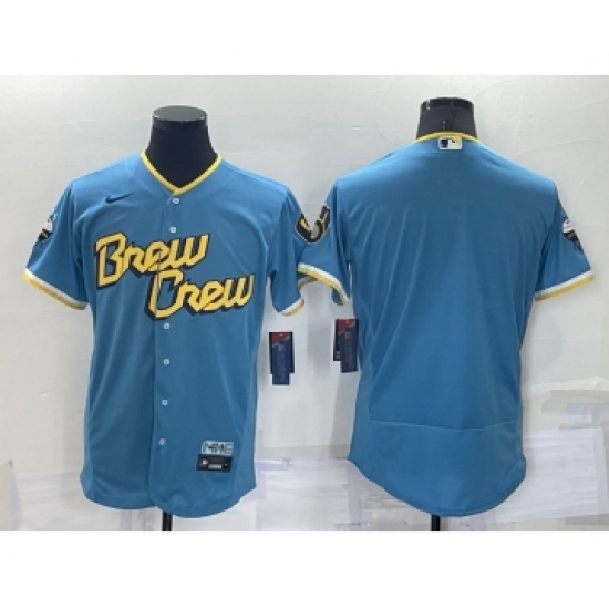 Men's Milwaukee Brewers Blank Number Blue 2022 City Connect Flex Base Stitched Jersey