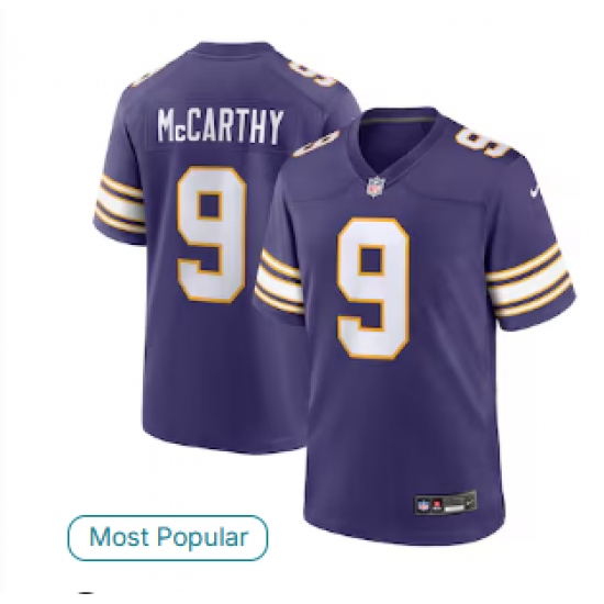 Men's Minnesota Vikings #9 J.J. McCarthy Nike Purple 2nd Alternate Player Game Jersey