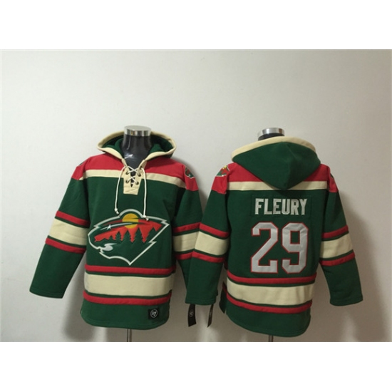 Men's Minnesota Wild #29 Marc-Andre Fleury Green Lace-Up Pullover Hoodie
