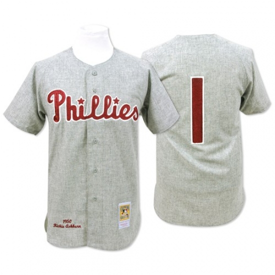 Men's Mitchell and Ness 1950 Philadelphia Phillies #1 Richie Ashburn Authentic Grey Throwback MLB Jersey