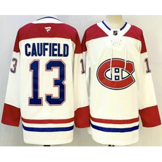 >Men's Montreal Canadiens #13 Cole Caufield White Authentic Jersey