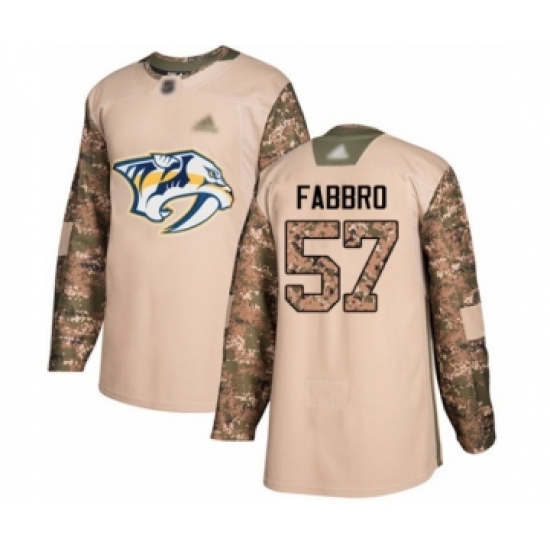 >Men's Nashville Predators #57 Dante Fabbro Authentic Camo Veterans Day Practice Hockey Jersey