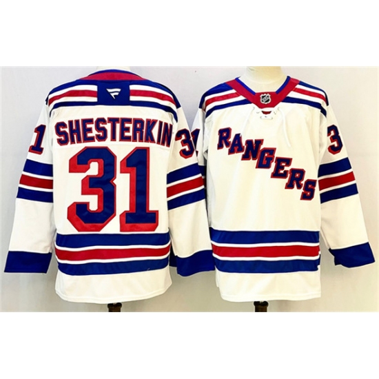 Men's New York Rangers #31 Igor Shesterkin White 2024-25 Away Stitched Hockey Jersey