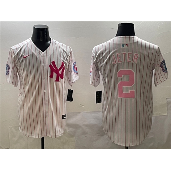 >Men's New York Yankees #2 Derek Jeter Pink With Limited Stitched Baseball Jersey