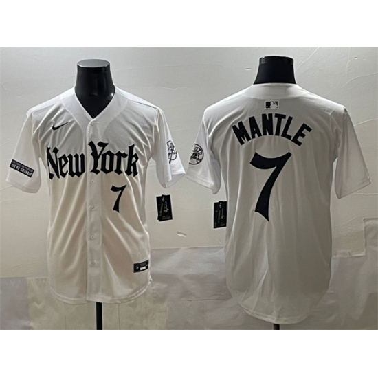 Men's New York Yankees #7 Mickey Mantle White 'Gothic Legacy Edition' Vapor Premier Limited Stitched Baseball Jersey