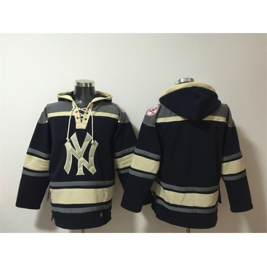 Men's New York Yankees Blank Navy Blue Ageless Must Have Lace Up Pullover Hoodie