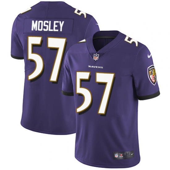 Home>NFL>Baltimore Ravens>C.J. Mosley>Men's Nike Baltimore Ravens #57 C.J. Mosley Purple Team Color Vapor Untouchable Limited Player NFL Jersey