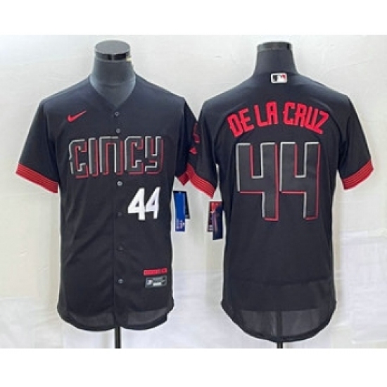 >Men's Nike Cincinnati Reds #44 Elly De La Cruz Number Black 2023 City Connect Flex Base Stitched Baseball Jersey