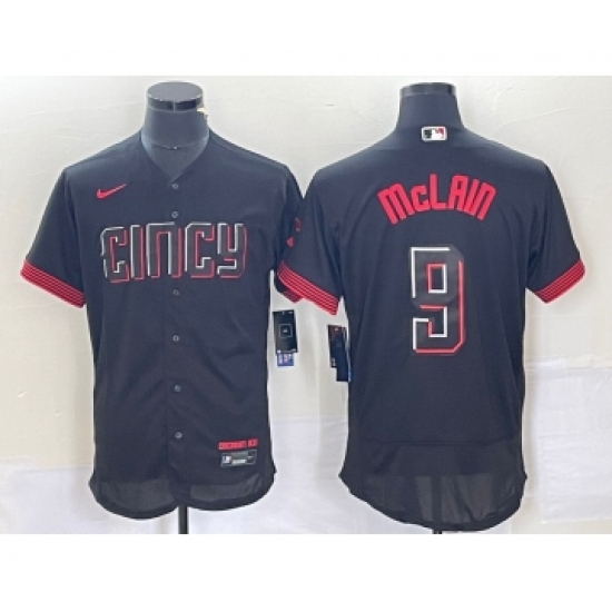 >Men's Nike Cincinnati Reds #9 Matt McLain Black 2023 City Connect Flex Base Stitched Jersey