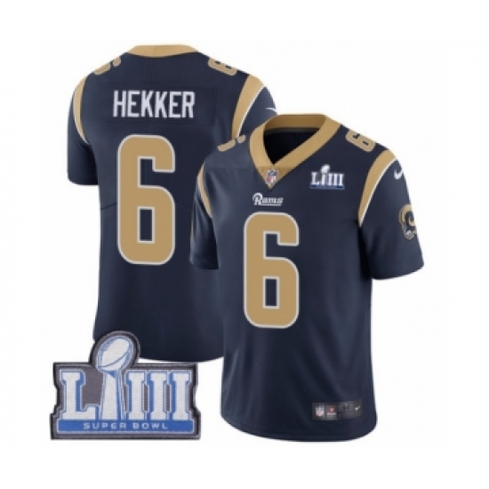 >Men's Nike Los Angeles Rams #6 Johnny Hekker Navy Blue Team Color Vapor Untouchable Limited Player Super Bowl LIII Bound NFL Jersey