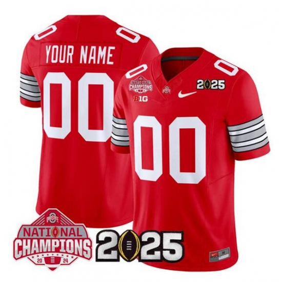 Men's Ohio State Buckeyes Active Player Custom Red 2025 CFP Final With National Champions Patch F.U.S.E. Vapor Limited Stitched Jersey