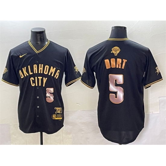 Men's Oklahoma City Thunder #5 Luguentz Dort Black Gold 2025 Finals Vapor Stitched Baseball Jersey