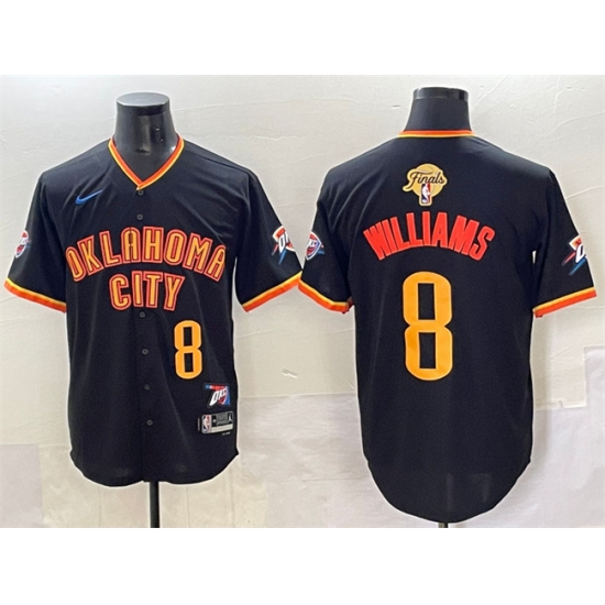 >Men's Oklahoma City Thunder #8 Jalen Williams Black 2025 Finals Vapor Stitched Baseball Jersey