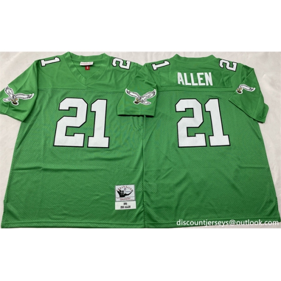 >Men's Philadelphia Eagles #21 Eric Allen Kelly Green Throwback Stitched Football Jersey