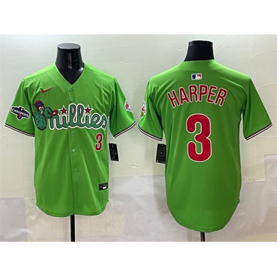 >Men's Philadelphia Phillies #3 Bryce Harper Light Green Phanatic With 2024 Division Champions Limited Stitched Jersey