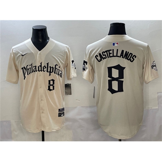 >Men's Philadelphia Phillies #8 Nick Castellanos Cream Gothic Vapor Limited Stitched Jersey