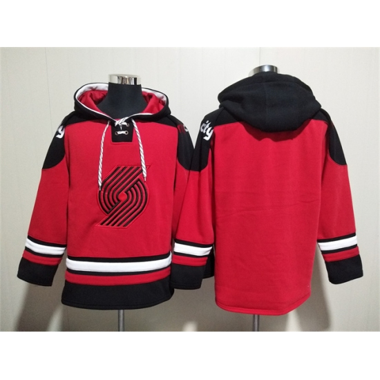 Men's Portland Trail Blazers Blank Red Lace-Up Pullover Hoodie