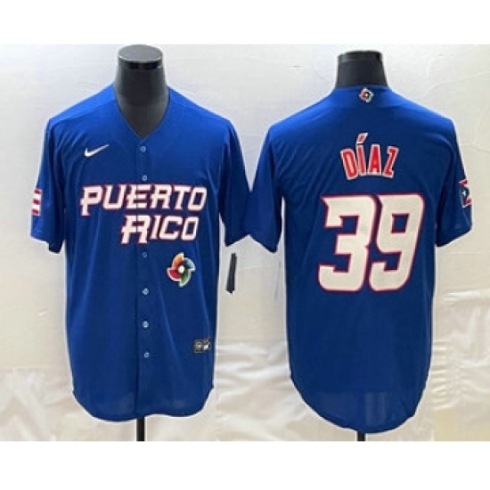 Men's Puerto Rico Baseball #39 Edwin Diaz 2023 Blue World Baseball Classic Stitched Jerseys