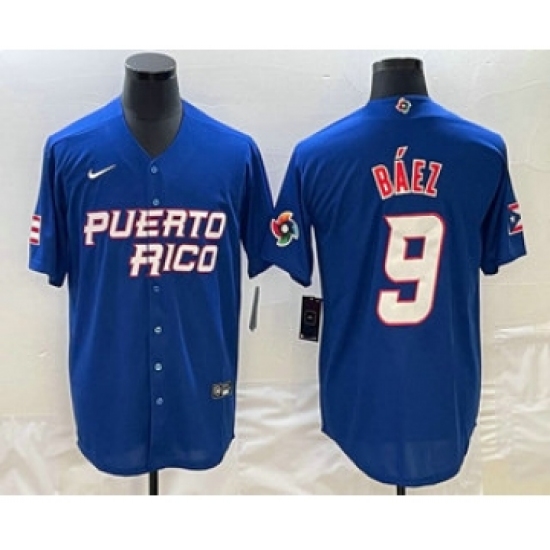 Men's Puerto Rico Baseball #9 Javier Baez 2023 Blue World Baseball Classic Stitched Jerseys