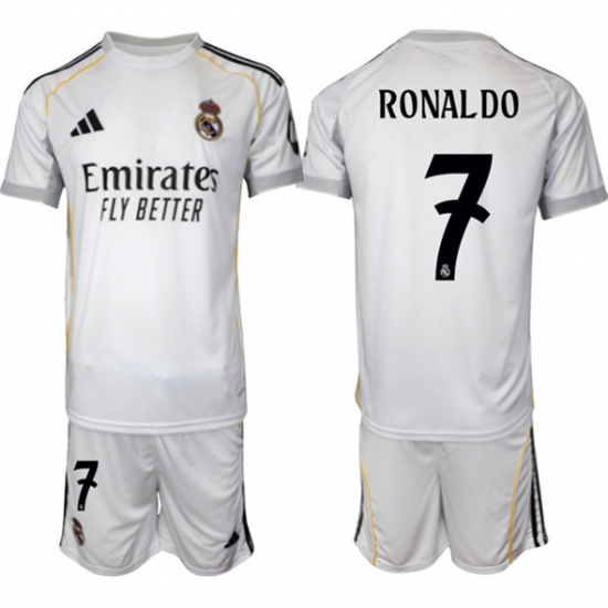 Men's Real Madrid #7 Ronaldo 25-26 White Home Soccer Jersey Suit
