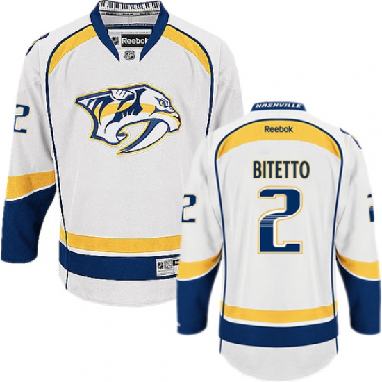 Home>NHL>Nashville Predators>Anthony Bitetto>Men's Reebok Nashville Predators #2 Anthony Bitetto Authentic White Away NHL Jersey