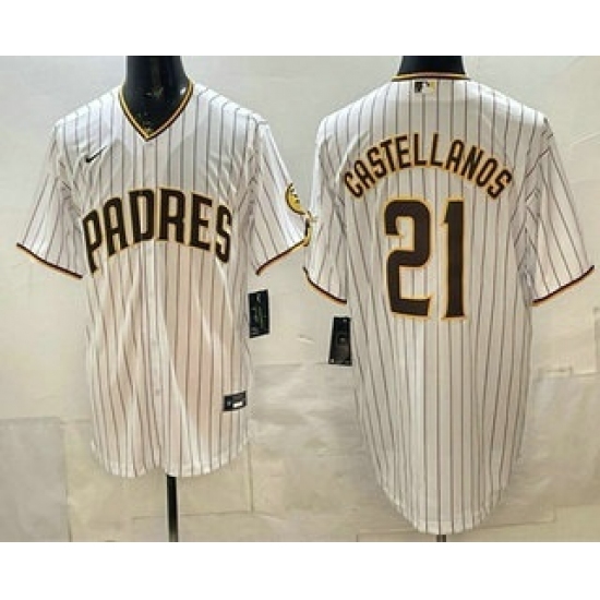 Men's San Diego Padres #21 Nick Castellanos White Cool Base Jersey