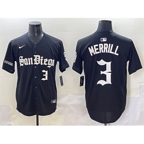 Men's San Diego Padres #3 Jackson Merrill Black Player Number Fashion Baseball Jersey