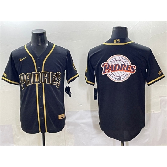 Men's San Diego Padres Team Big Logo Black Gold Stitched Baseball Jersey