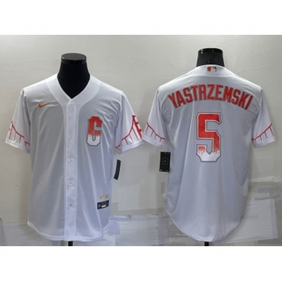 Men's San Francisco Giants #5 Mike Yastrzemski White 2021 City Connect Stitched Cool Base Nike Jersey