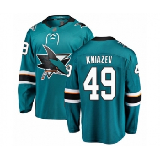 >Men's San Jose Sharks #49 Artemi Kniazev Fanatics Branded Teal Green Home Breakaway Hockey Jersey