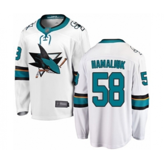 Men's San Jose Sharks #58 Dillon Hamaliuk Fanatics Branded White Away Breakaway Hockey Jersey