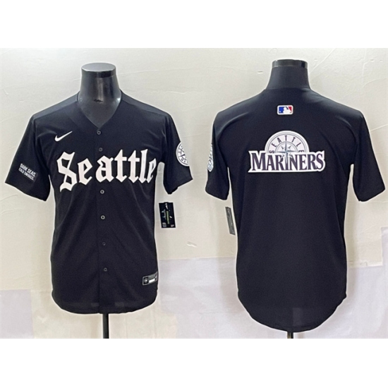 Men's Seattle Mariners Team Big Logo Black 'Deep Sea Gothic Edition' Vapor Premier Limited Stitched Baseball Jersey