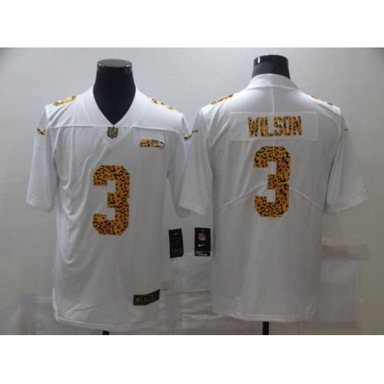 Men's Seattle Seahawks #3 Russell Wilson White Nike Leopard Print Limited Jersey