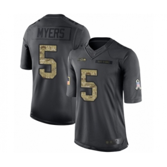 >Men's Seattle Seahawks #5 Jason Myers Limited Black 2016 Salute to Service Football Jersey