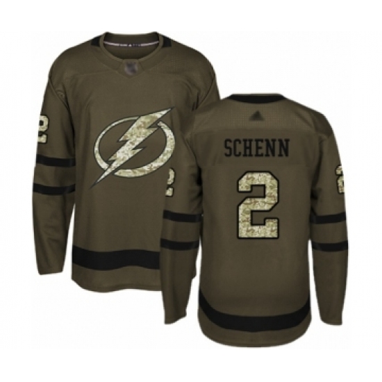 >Men's Tampa Bay Lightning #2 Luke Schenn Authentic Green Salute to Service Hockey Jersey