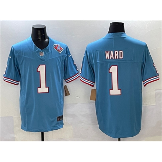 Men's Tennessee Titans #1 Cameron Ward Blue 2025 Draft F.U.S.E. 1997 Throwback Vapor Limited Football Stitched Jersey